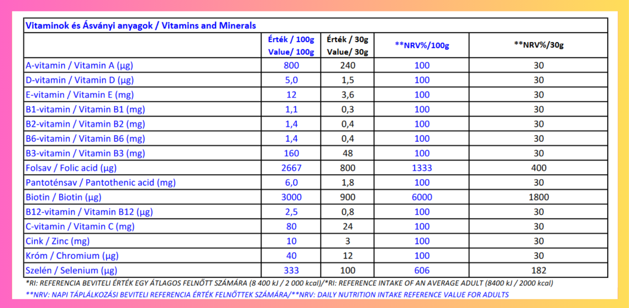 NETTÓ TÖMEG: 450 g / 15 adag