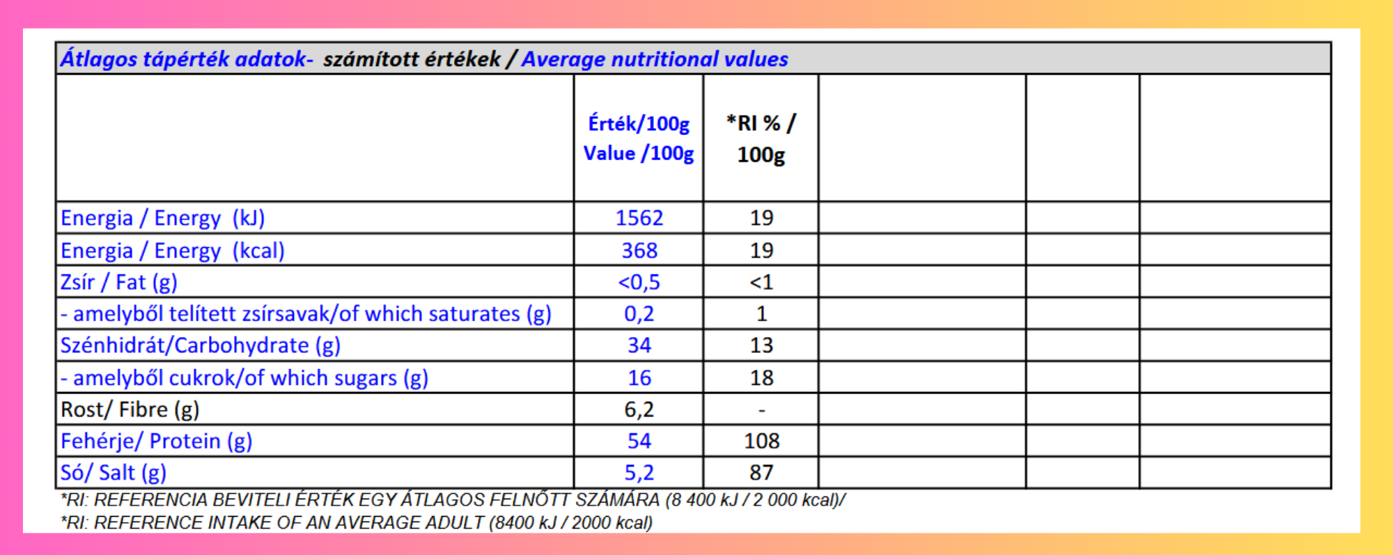 Glutént, rákféléket, tojást, halat, szóját, tejet, dióféléket, zellert és puhatestűeket felhasználó üzemben készült.